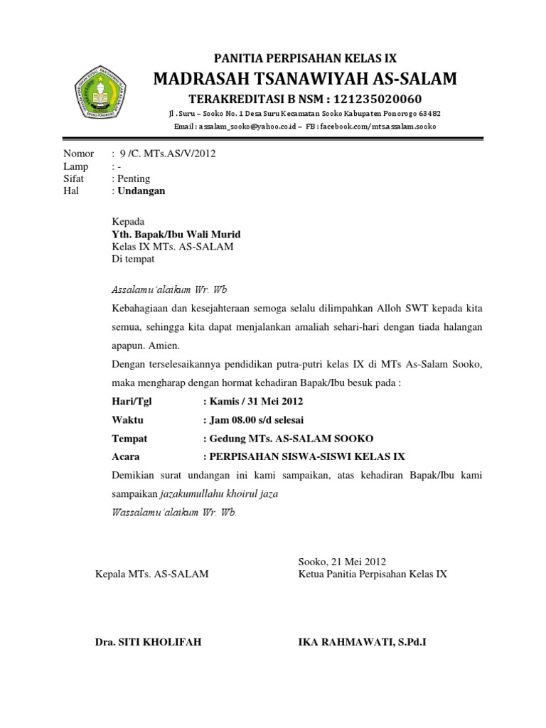 Contoh Surat Undangan Perpisahan Guru Mutasi Edukasi Lif Co Id - Surat resmi biasanya digunakan untuk tujuan yang resmi, sementara surat tidak.