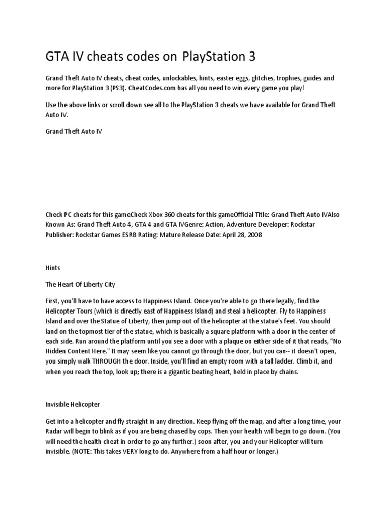 Grand Theft Auto Iv Cheat Codes And Secrets For Pc - Please note that cheats will affect missions and achievements.